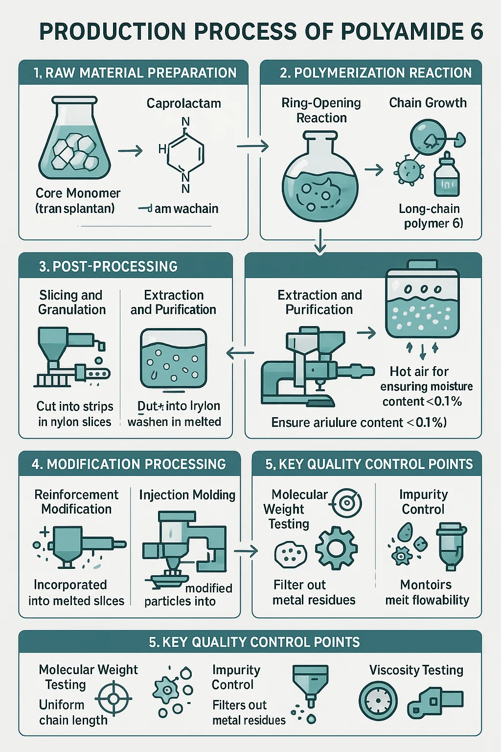 Monomer rdzenia: Kaprolaktam (przezroczysty kryształ) wytwarzany z benzenu ekstrahowanego z ropy naftowej w drodze wieloetapowej reakcji.