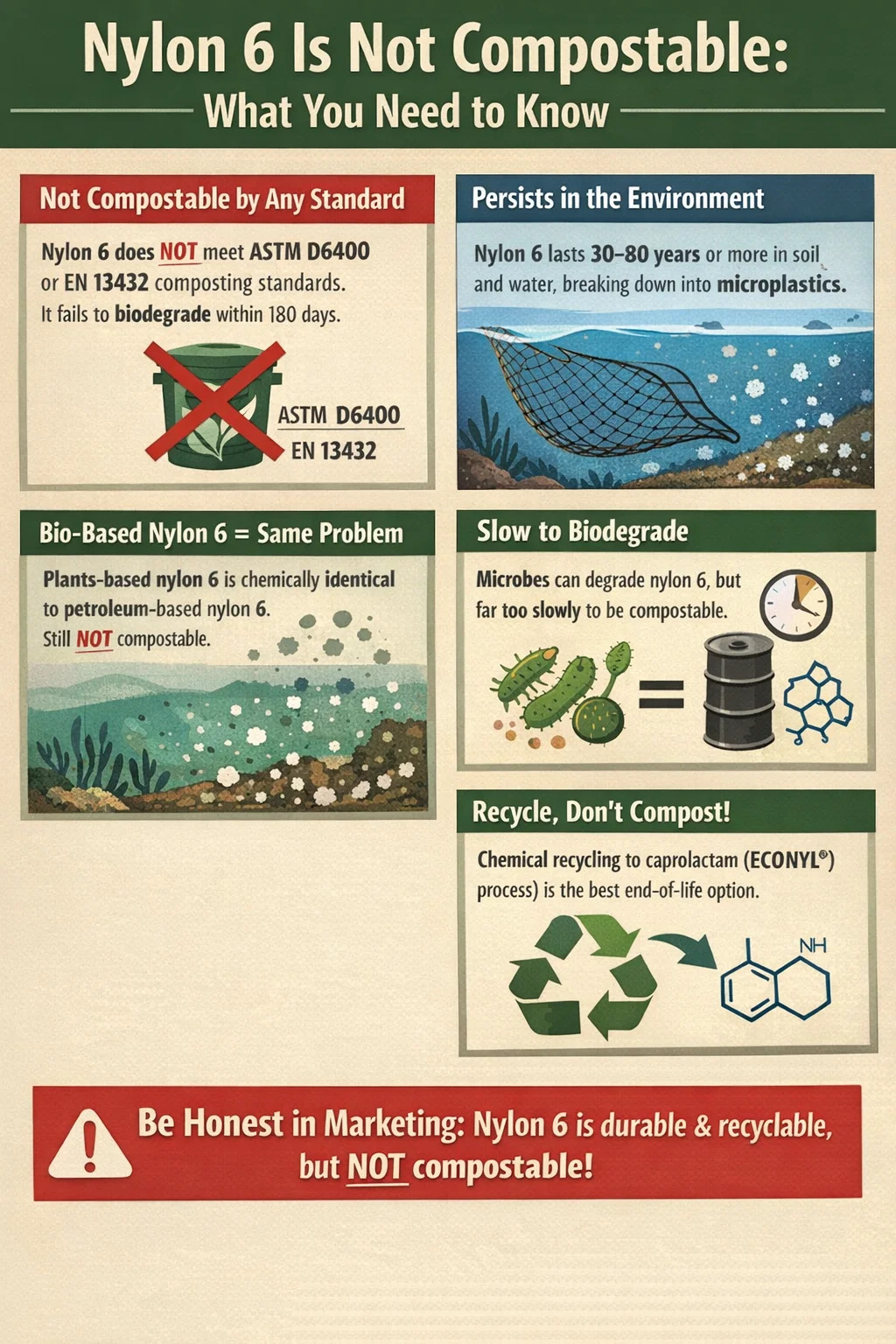 Bezpośrednia odpowiedź: Nylon 6 nie nadaje się do kompostowania