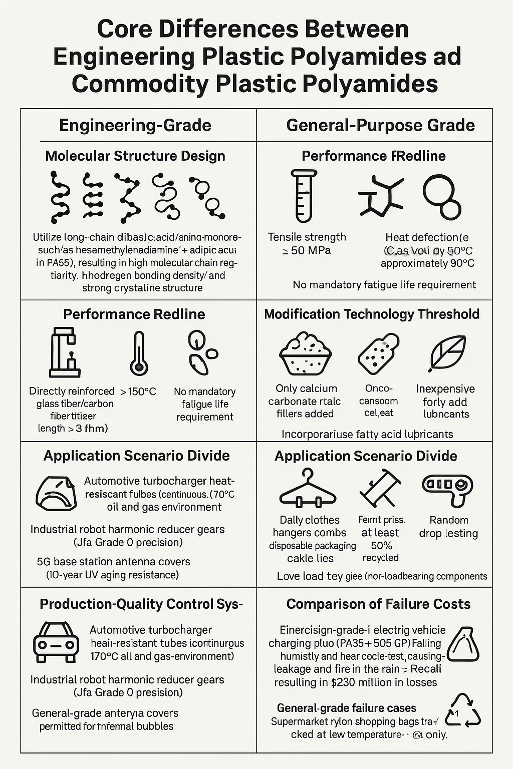 Różnice podstawowe między Inżynierskie plastikowe poliamidy i plastikowe poliamidy towarowe
